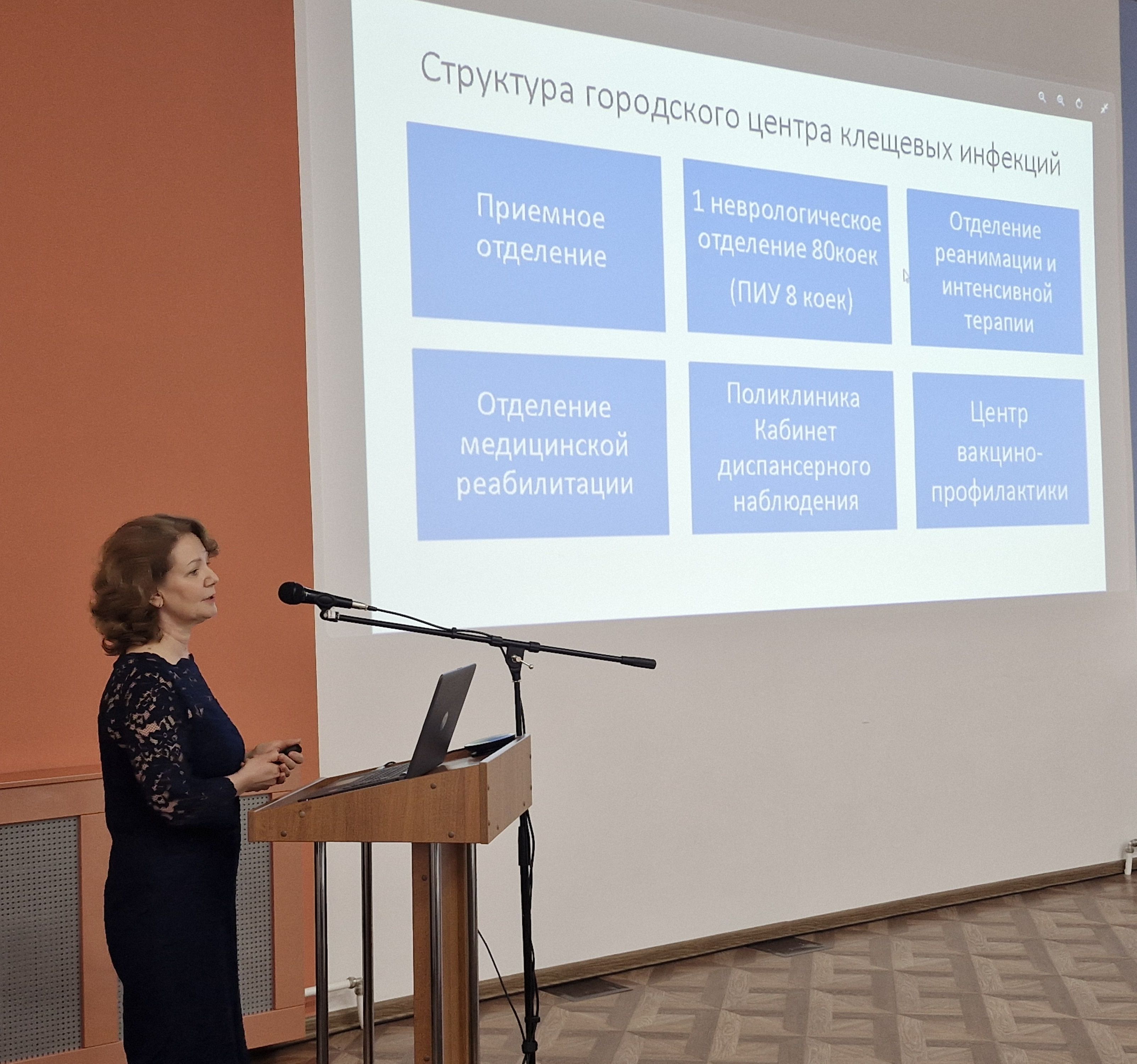 Итогами работы по профилактике, диагностике, лечению и наблюдению пациентов с клещевыми инфекциями поделились Бродовикова Анна Владимировна, врач-невролог высшей квалификационной категории «Новой больницы», Душина Елена Валентиновна, заведующая Центром иммунопрофилактики «Новой больницы», врач–аллерголог-иммунолог, Волкова Лариса Ивановна, заведующая кафедрой нервных болезней, нейрохирургии и медицинской генетики УГМУ, представители Роспотребнадзора, клинико-диагностического центра им. Я.Б. Бейкина и городской клинической больницы № 40.